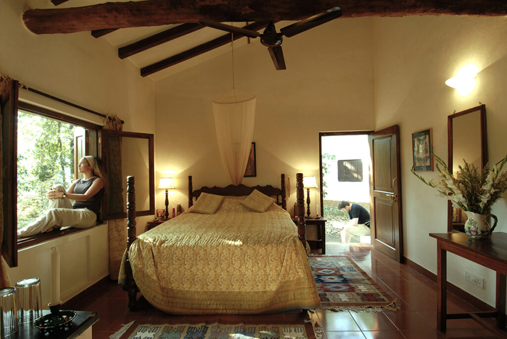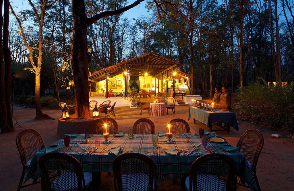 Her kan du dra på safari i Kanha nasjonalpark, kjent som en av Indias best bevarte tigerreservater. Med en erfarne naturguider får du muligheten til å oppleve tigre, leoparder, ville hunder og et rikt fugleliv i sitt naturlige habitat. Campen er omgitt av frodig natur og byr på en fredelig atmosfære, perfekte omgivelser for å koble av og virkelig komme tett på dyrelivet.