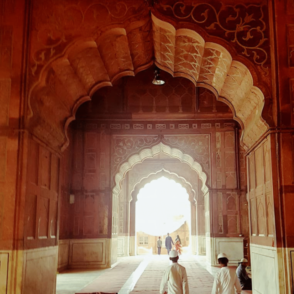 Om dere ønsker, kan dere også oppleve Taj Mahal i solnedgang fra hagen Mehtab Bagh, som ligger på den andre siden av elven. Utsikten herfra er helt nydelig! Sjåføren tar dere dit – beregn litt ekstra tid, da trafikken i Agra kan være travel, men opplevelsen er absolutt verdt det.